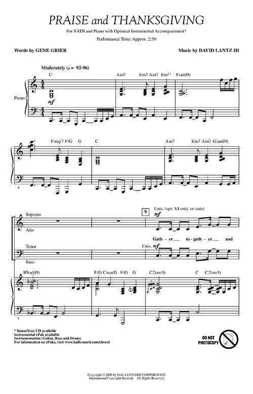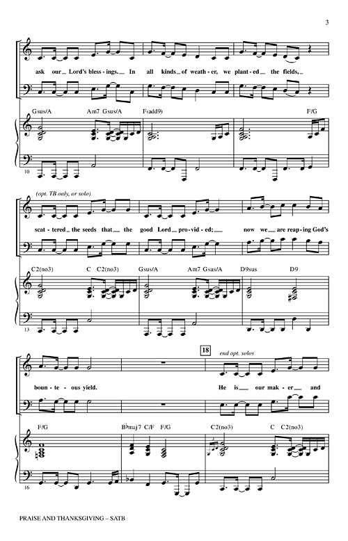 Here is an original work of thanksgiving with energy and spirit - thanking God for our many blessings, as well as the gift of His love. A great anthem for Thanksgiving, harvest or other celebrations of appreciation. BonusTrax CD and Instrumental ePak also available. Performance time approx. 2:50.