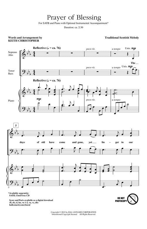 Set to the Auld Lang Syne tune, Christopher's reflective lyrics will provide a closing backdrop for a variety of services, concerts and programs. Available separately: SATB, ChoirTrax CD. Score and parts (fl, ob, cl, bn, vn 1-2, va, vc, db) available as a digital download. Duration: ca. 2:30.