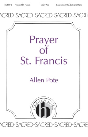 a two part mixed revoicing of the classic setting by Allen Pote of the poignant prayer of St. Francis of Assisi, a prayer that remains relevant and even urgent for our times. Suitable for worship services and concerts for middle school, high school, church and community choirs that want to program an accessible beloved classic that will speak movingly to the assembly.