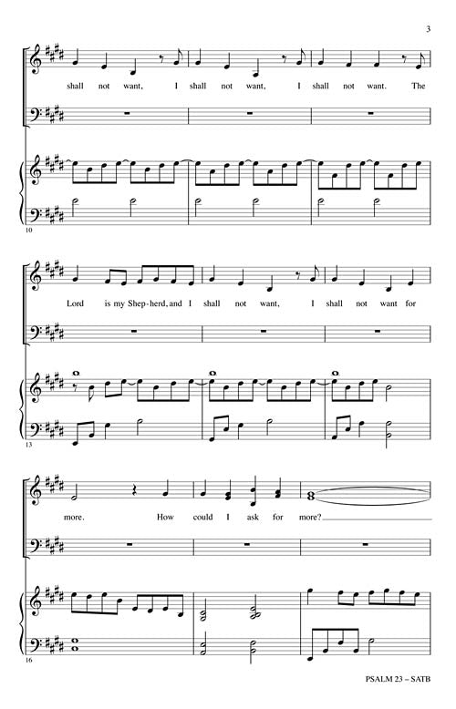 This often-set Psalm has found new purpose in this shining setting. Each phrase of the celebrated scripture receives a special moment with the words being cradled in caring arms. Musically deep, this anthem offers thoughtful conductors ample opportunity for interpretive nuance. The orchestration adds yet another layer of loveliness to this significant composition. Truly unique! Score and Parts (fl 1-2, cl 1-2, bn, tpt 1-3, hn 1-4, tbn 1-2, tbn 3/tba, perc 1-2/timp, vn 1-2, vc, db) available as a digital download.