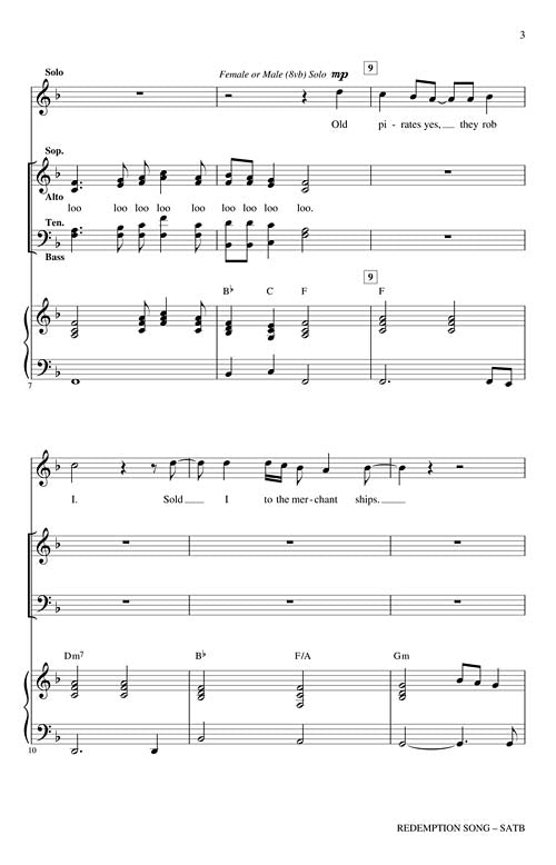 Considered one of Bob Marley's greatest songs. This John Legend cover was sung as a tribute to the late Nelson Mandela in 2013. Taking this acoustic song and setting it for choir is a beautiful thing. There is room for rubato and you and your students will enjoy exploring the spaces that exist in this arrangement.