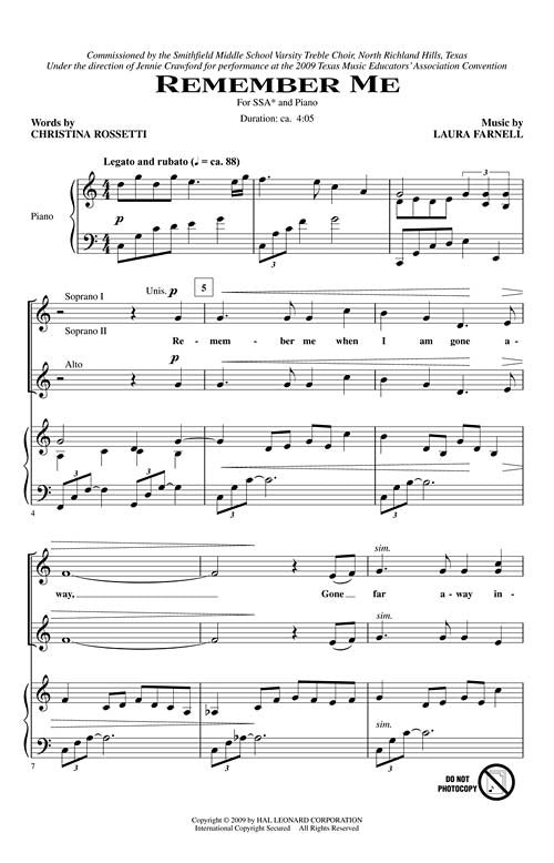 Long legato phrases create an atmosphere of emotional expressiveness leading to a glorious climax in this romantic setting of a poem by Christina Rossetti. Well-crafted to showcase younger SSA choirs at their best, this is an ideal selection for honor choir and festival performance. Duration: ca. 4:05