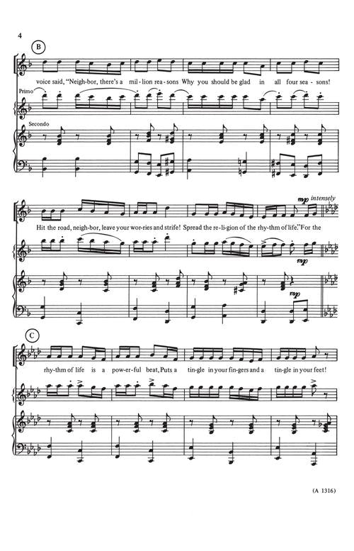 This hit from the Broadway musical and motion picture Sweet Charity has wowed audiences for over two decades. A StudioTrax CD is available featuring a brand new recording. With multiple voicings and separate choreography available, this proven winner is extremely versatile. Get your concert moving with this positive and energetic piece! Available separately: SATB, SSA, TTBB, SAB, Choreography, StudioTrax CD.