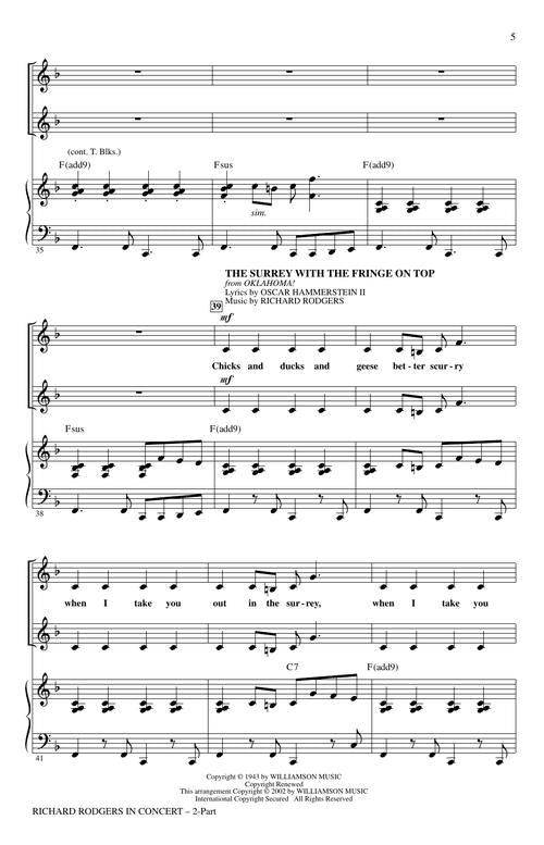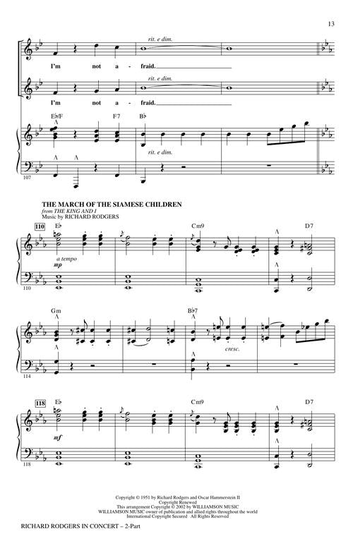 2002 marks the 100th birthday of one of America's top Broadway composers. Richard Rodgers' contributions to the musical theatre of his day were extraordinary, and his influence on the musical theatre of today and tomorrow is without comparison. His career spanned more than six decades, and his hits ranged from the silver screens of Hollywood to the bright lights of Broadway, London and beyond. This new medley for choir, band and optional strings salutes the achievements of this Broadway legend. Songs include: Do-Re-Mi, I Whistle a Happy Tune, June Is Bustin' Out All Over, The March of the Siamese Children, My Funny Valentine, Oklahoma, Slaughter on Tenth Avenue, The Sound of Music, The Surrey with the Fringe on Top, There Is Nothin' Like a Dame.Available separately: SATB, SAB, 2-Part, Concert Band (Gr. 3), String Pak and ShowTrax CD. Performance Time: Approx. 9:15.