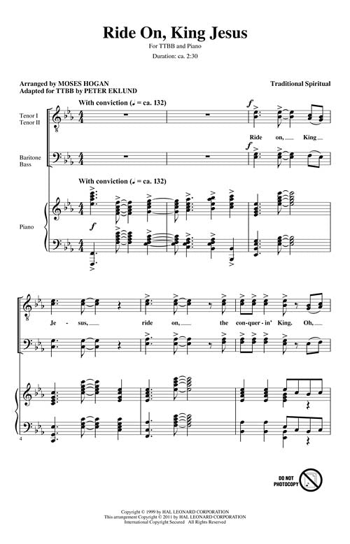 Now available for men's choir, this exuberant work represents some of Moses Hogan's best compositional statements and is a powerful concert feature for better choirs! Extraordinary in every way!