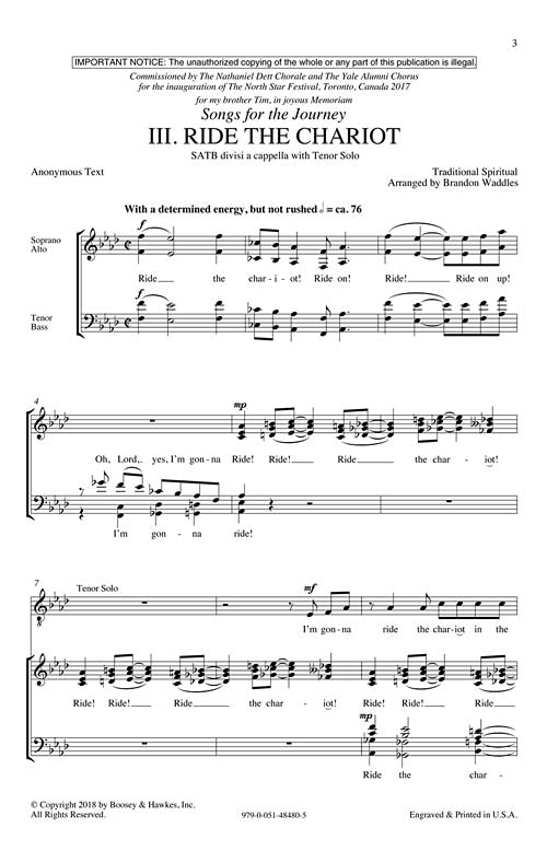 Here is a concert spiritual for the very best choirs. Extended ranges, divisi in all parts, and a tenor solo for that tenor who can really cut it loose. Fun, exciting and the perfect closer for your concert.