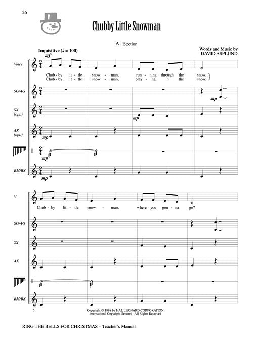 Enjoy the festive spirit of the holidays with this new collection by David Asplund of 10 songs for young voices and accompanying Orff instruments. Suitable for singers, 'ringers' and players as young as 1st grade through Grade 6, these arrangements are also presented with helpful teaching tips for effective, easy learning. Whether in the classroom or on stage, this collection is guaranteed to add extra sparkle this holiday season. Available: Teacher's Manual only. For Grades 1-6.