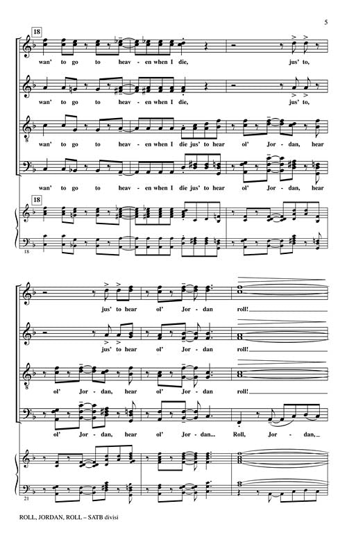 An exciting and dramatic setting of the traditional spiritual, this substantial work is brimming with brilliance and virtuosity for choirs up to the challenge! Duration: ca. 3:15.