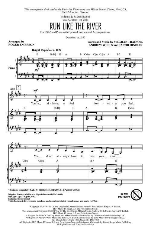 An inspiring pop anthem with winning lyrics and a chorus that sticks, Meghan Trainor's Run Like the River (from Playmobil: The Movie) is given a first-rate choral arrangement by Roger Emerson. Building a sound both distinctive and faithful to the original, Emerson weaves a tapestry of melodies and countermelodies, complex rhythms, and exhilarating harmonies. A sonic force to be reckoned with!