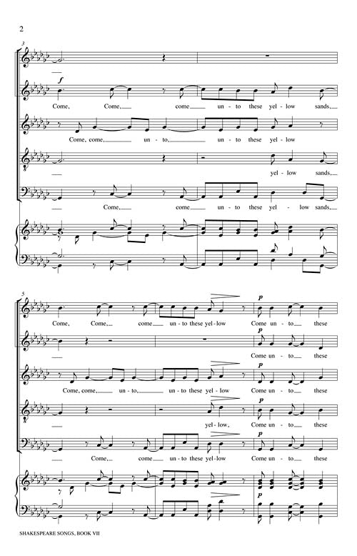 This is the latest - and 7th - in an a cappella series going back three decades in which the texts are taken from Shakespeare's plays. Come Unto These Yellow Sands is a gentle invitation to the listener, at least until the animals take over. Thou Canst Not Hit It, in this interpretation, is a song about trying to hit the high and low notes. Surrounded by comedy and tragedy, Honour, Riches, Marriage-Blessing is the idyllic center of the set. O Sweet Oliver, with its dueling boy and girl choirs, leads into Willow, Willow, where the poem's word repetitions inspire the driving rhythm.