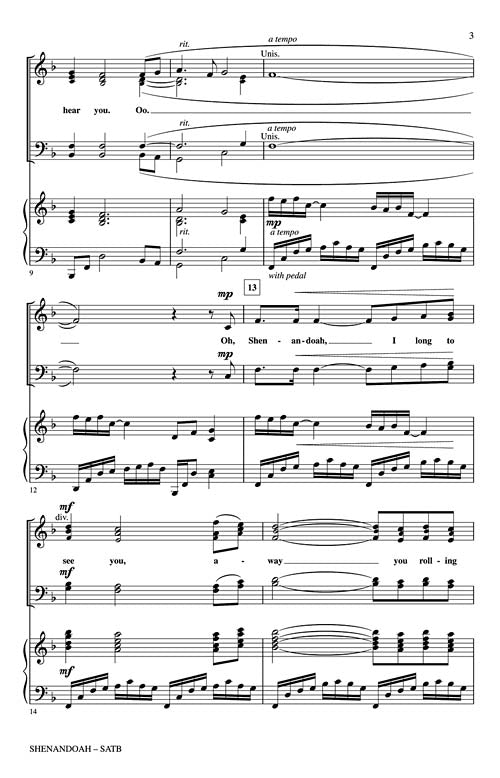 Hear the gentle undulation of the river in the piano accompaniment of this lyrical folksong setting. The full choral textures are enhanced by surprise modulations that bring a refreshing perspective to this classic tune. Available separately: SATB, SAB, SSA. Duration: ca. 3:15.