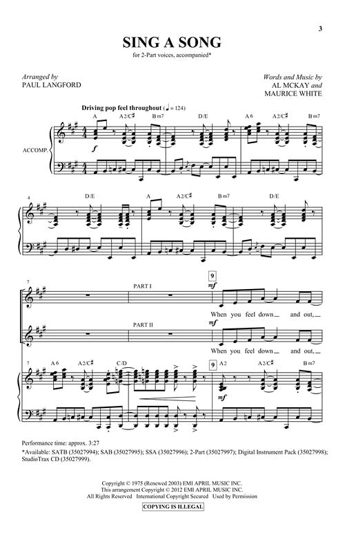 This hit by soul and R&B band, Earth, Wind & Fire, is a show-stopping choral! The music-themed lyrics, hot instrumental accompaniment, and rhythmic vocals combine to create a fresh, dynamic performance piece for all ages. Available: SATB; SAB; SSA; 2-Part; Digital Instrument Pack; StudioTrax CD.