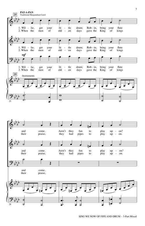 Filled with energy and drive, this mashup of Sing We Now of Christmas and Pat-a-Pan brings new life to these familiar holiday carols. A generous measure of unison singing along with repetitive text and melodic phrases provide strength and confidence to growing singers and choirs.