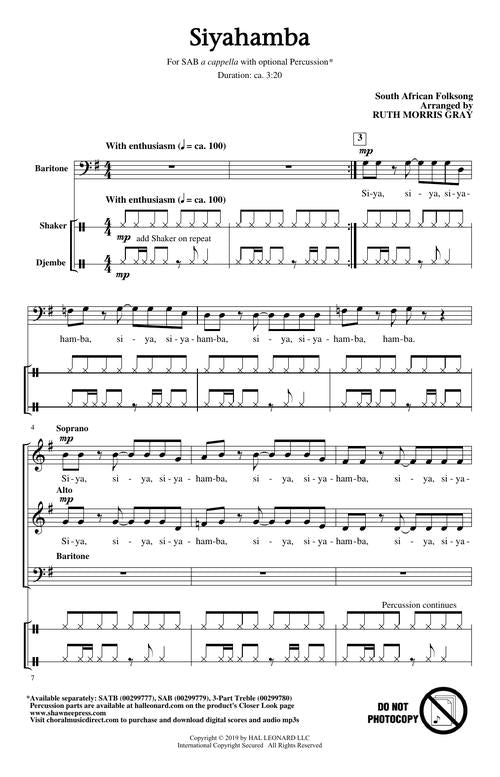 Lively percussion captures the attention followed by a stacking of voices singing this popular South African folk song. Attention is given to vocal writing that creates rhythm patterns around the melody, use of repetition and the use of both English and Swahili. A perfect beginning a cappella work for young singers and developing choirs. Percussion parts are available for download on the Closer Look page.