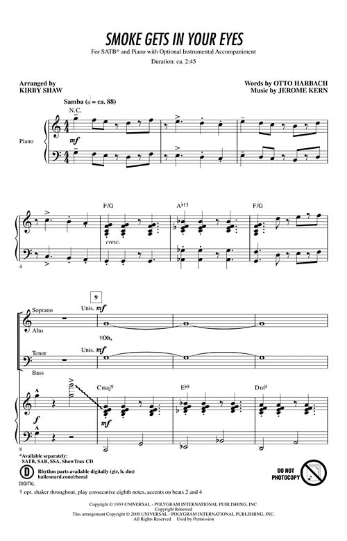 Set in a smooth samba style, this arrangement will showcase your vocal jazz or pop ensemble at their very best! Available separately: SATB, SAB, SSA, ShowTrax CD. Rhythm parts available digitally (gtr, b, dm). Duration: ca. 2:45.