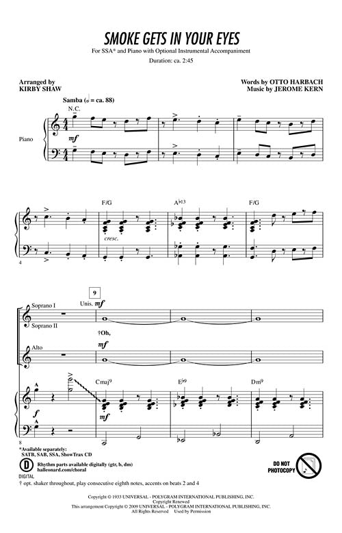 Set in a smooth samba style, this arrangement will showcase your vocal jazz or pop ensemble at their very best! Available separately: SATB, SAB, SSA, ShowTrax CD. Rhythm parts available digitally (gtr, b, dm). Duration: ca. 2:45.