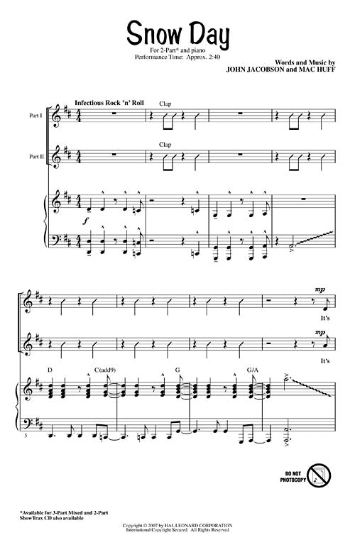 It's every kid's winter wish - the man on the radio gives the good news - a blizzard's on the way and it's gonna make your day! A great choice for winter programs!Available separately: 2-Part, 3-Part Mixed and ShowTrax CD. Performance Time: Approx. 2.40