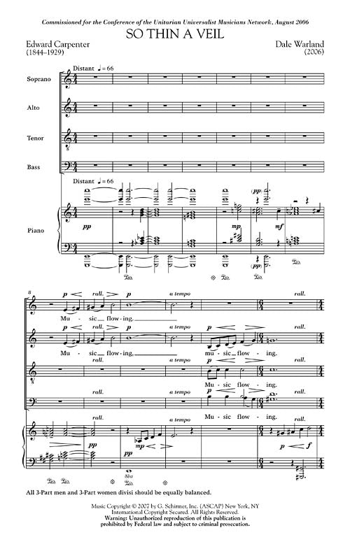An elegant setting of the poem by Edward Carpenter, this work evokes the boundary between the living and those who have passed on. So thin a veil divides us from such joy... Performance Time: Approx. 4:40