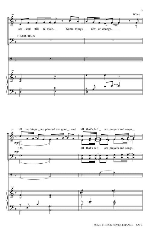 This song is an inspired reminder of God's faithfulness. Tender and fragile, the theme opens with innocence and clarity, articulating the seasons of life and the constancy of the Almighty. Though composed in a singer-songwriter idiom, the choral parts are deep and satisfying, bringing warmth and sincerity. A reference to Psalm 119 is crowned with the affirmation, I choose to live in faith, not fear. Truly a song for this season of challenges! NOTE: Full Performance and Part Dominant MP3's are for the SATB voicing only.