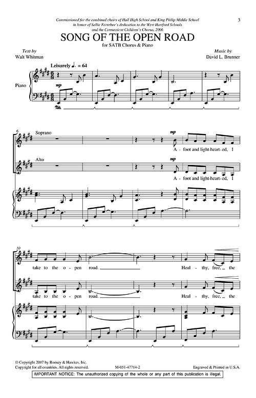 Perfect for graduations, retirements, or other occasions of farewell. Song of the Open Road delivers a message of strength, courage, and confidence for the start of a new journey.