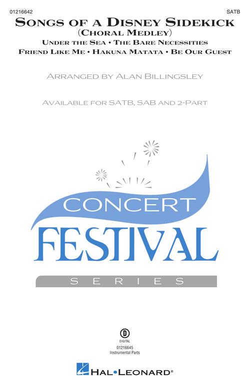 There are Disney heroes and there are Disney villains, but this rip-roaring barn-burner of a choral arrangement belongs to those fringe characters that inhabit the sideline of the story. They make us chuckle, cry, swoon, and offer up the invaluable support that the leads often need more than anything: Disney sidekicks. Includes: Under the Sea, The Bare Necessities, Friend Like Me, Hakuna Matata, and Be Our Guest.