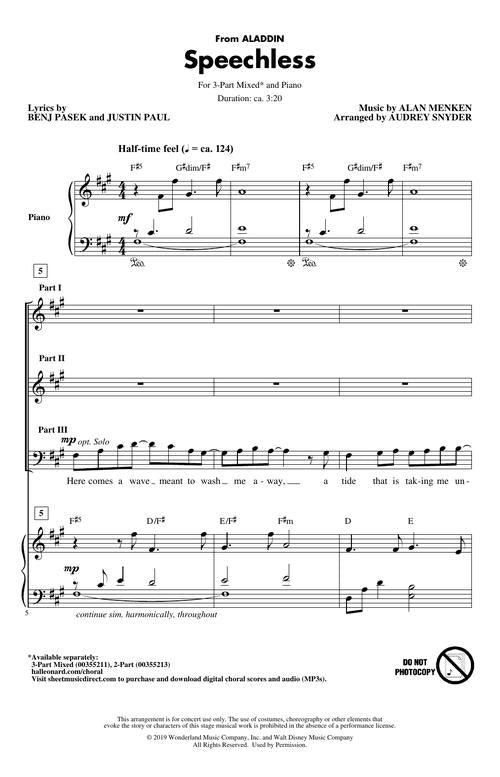 Speechless (from Aladdin) 3-Part Mixed