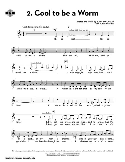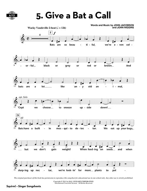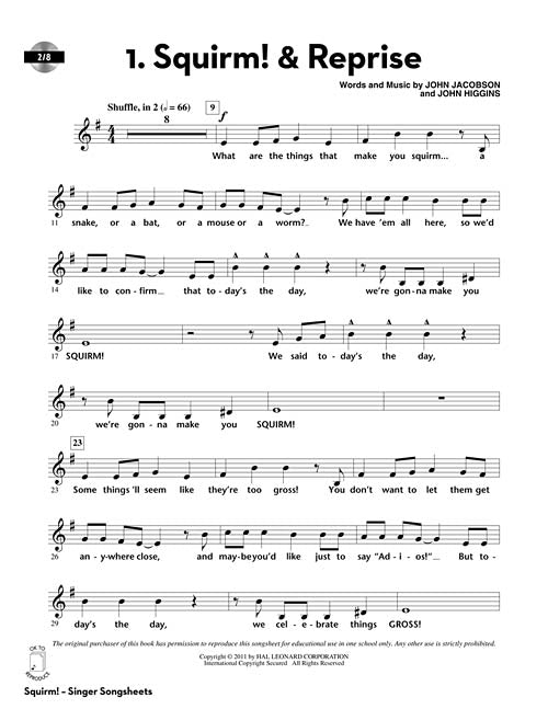 Spiders! Snakes! Bats! Worms! EWWW!! AHHH!! Join the wiggles and squiggles as the Itsy Bitsy Spider, Daddy Long Legs, Hook Worm, Snake, and a host of other critters take over the stage. But wait! No need to scream . . . just listen carefully and you will learn how things that make us squirm can be A-OK! Showcase your young Gr. K-3 performers in this 20-minute squirmy musical featuring the popular writing team of John Jacobson and John Higgins. The easy-to-learn songs and creative rhyming dialog with 45 speaking parts will make your show a hit with any audience, whether it be a general assembly, a community program, a class project or evening concert. The enhanced Teacher Edition/Singer CD-ROM includes piano/vocal arrangements with choreography, helpful production guide with staging and costume suggestions, teaching objectives linked to the National Standards for each song, PLUS reproducible singer parts on the enclosed data disc. For the best value, the Classroom Kit offers the Teacher/Singer and Performance/Accompaniment CD. Available separately: Teacher Edition/Singer CD-ROM, Preview CD (full performance with dialog), Preview Pak (Preview CD and sample pages), Performance/Accompaniment CD, Classroom Kit (Teacher/Singer CD-ROM and P/A CD).