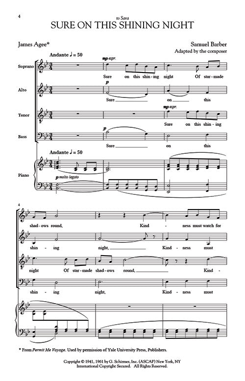 Barber's arrangement of his famous song for SATB chorus and piano is now available in a newly engraved edition with an historical introduction.