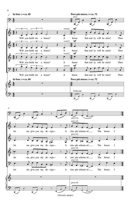 This pairing of two of Leonard Bernstein's songs Take Care of This House, from 1600 Pennsylvania Avenue and My House, from Peter Pan will create a reflective concert moment for mixed choirs from high school and up. With piano and cello.
