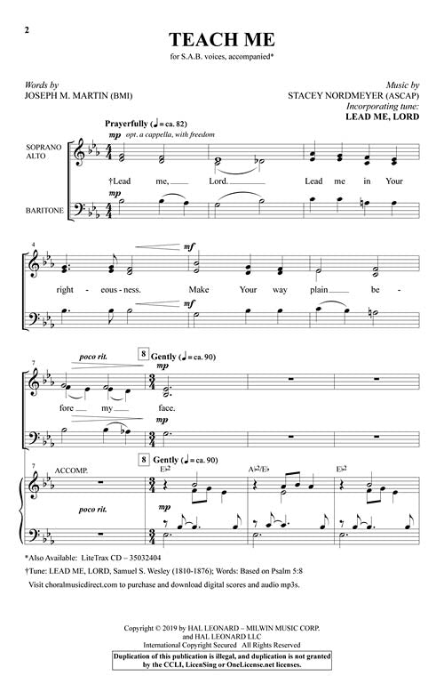 A timeless message of faith and spiritual surrender meets with expressive music in this charming SAB offering. The music emerges with gentle leaping intervals, moving in and out of soft encouraging harmonies. An excellent choice for a time of Bible study or baccalaureate services, this prayer for wisdom is a winsome addition to the repertoire.