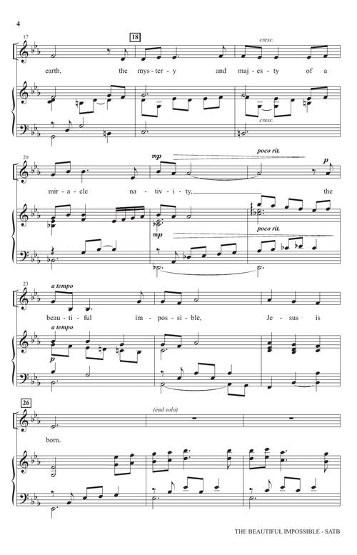 Lush melodic writing characterizes this original Christmas anthem, offering a thoughtful choice for worship or concert settings. The mystery of Emmanuel is center stage in message and music, and the accessible harmonies and expressive piano support arrange for the success of your ensemble. Score and Parts (fl 1-2, ob/enghn, cl 1-2, bn, hn 1-2, tpt 1-3, tbn 1-2, btbn/tba, timp, perc 1-2, hp, pno, vn 1-2, va, vc, db) available as a digital download.