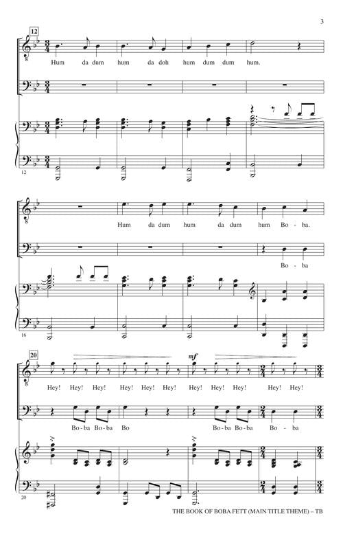 During the wait between Disney+'s the Mandalorian Seasons Two and Three, viewers got to see just what had been going on with Star Wars' favorite bounty hunter for hire, Boba Fett. Composing the main theme of the new series was film-scoring heavyweight Ludwig Göransson. Featuring guttural shouts and wordless bellows, this is an outstanding feature for your Tenor/Bass choir!