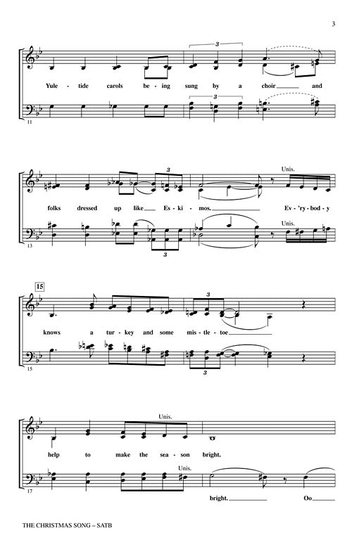 Images of a warm and loving holiday are sure to spring to mind with the a cappella jazz stylings of the Mel Tormé classic. A poignant, expressive moment for your concert performance. Available separately: SATB a cappella, SSAA a cappella. Duration: ca. 2:50.