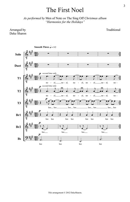 As performed by Men of Note on The Sing Off Christmas album Harmonies for the Holidays, this soothing tapestry of diatonic arpeggiations and melodic lines gives the song a smooth contemporary a cappella feel that will sit comfortably alongside more traditional carols in your holiday program.