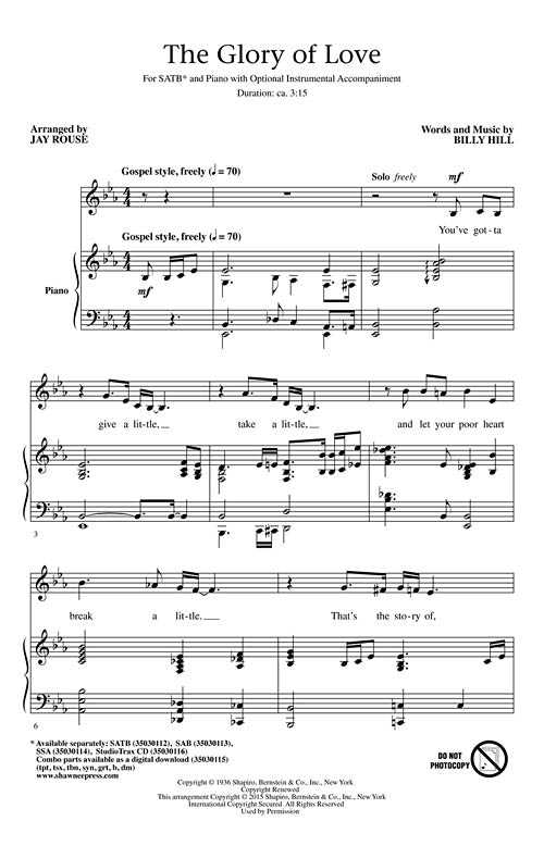 From Benny Goodman to Bette Midler and so many other artists, this classic song is forever popular. Beginning with a heart-felt solo, the arrangement goes into a relaxed gospel style, setting the melody and lyrics perfectly to reflect the ups and downs of life and as long as there's the two of us, that's the story of, that's the glory of love. href=https://youtu.be/m1IQJXD2bxg?list=PLzwGzaGGm2ApWgYNaQVUcFTh6YOldaR6_ target=_newScorePlay - click to view score with recording./