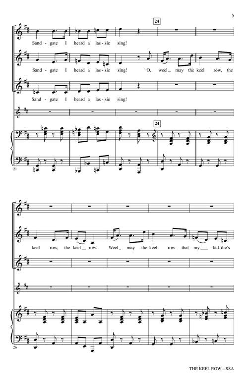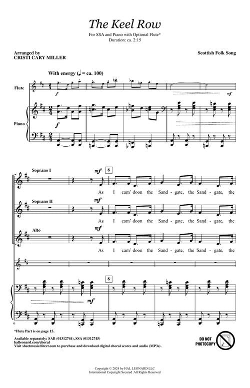 Arranging a beloved traditional song can be a difficult task, as one must walk a delicate tightrope - add fresh appeal, but not to the point of obscuring the song's simplicity and raw, authentic humanity. Cristi Cary Miller passes this test with flying colors, turning out a delightful rendition of the Tyneside folk song The Keel Row. Alive with dancing rhythms and frolicking counterpoint, with an optional flute part to add sparkle.