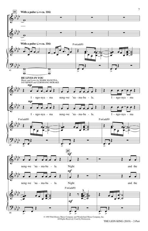 Since its initial release in 1994, Disney's The Lion King and its many sequels, TV shows, remakes and theatrical productions have firmly placed this beloved retelling of Shakespeare's Hamlet among the ranks of the Mouse House's best, deftly balancing humor, grief, joy and heart in an Elton John-composed and Hans Zimmer-scored cinematic treasure. Arranger Mark Brymer (also a Disney composer!), masterfully sets the best of the entire Lion King catalog in this brand new, completely fresh medley which includes: Can You Feel the Love Tonight, Circle of Life, Hakuna Matata, He Lives in You, Never Too Late, and Beyoncé's Spirit!