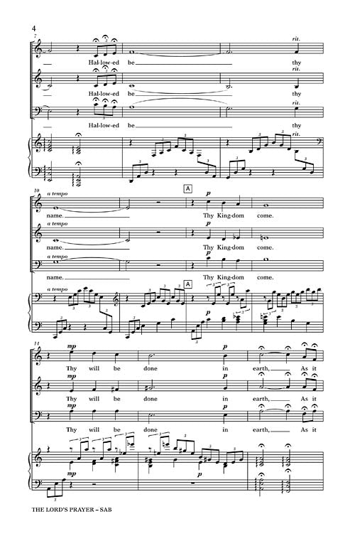 Available for the first time! The Lord's Prayer by Albert Hay Malotte is now available in the key of C, with a recorded accompaniment available on CD and orchestra score and parts. Ideal for church and sacred concert performance. Available for SATB, SAB, SSA and 2-Part. ChoirTrax CD available. Orchestral Pak also available. Performance Time: Approx. 2:30