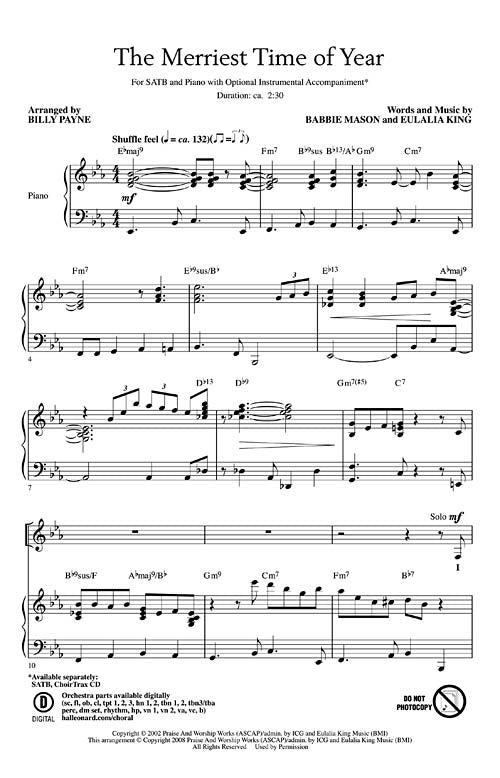 Co-writers Babbie Mason and Eulalia King teamed together to write this joyous Christmas piece. Featuring a soloist, ensemble, and choir, this holiday creation will serve well as a pageant or concert opener, or simply as a festive call to worship in a more contemporary worship setting. Available separately: SATB, Full Orchestra score and parts (sc, fl, ob, cl, tpt 1, 2, 3, hn 1, 2, tbn 1, 2, tbn 3/tba, perc, dm set, rhythm, hp, str:88421), ChoirTrax CD. Duration: ca. 2:30.