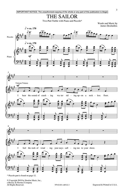 Take a wild ride on the rolling waves as The Sailor describes the feelings, sights and sounds of an exciting voyage. An unusual meter of five and Mixolydian mode bring a distinctive sound to this seafaring journey, while sections of body percussion add to the adventure.