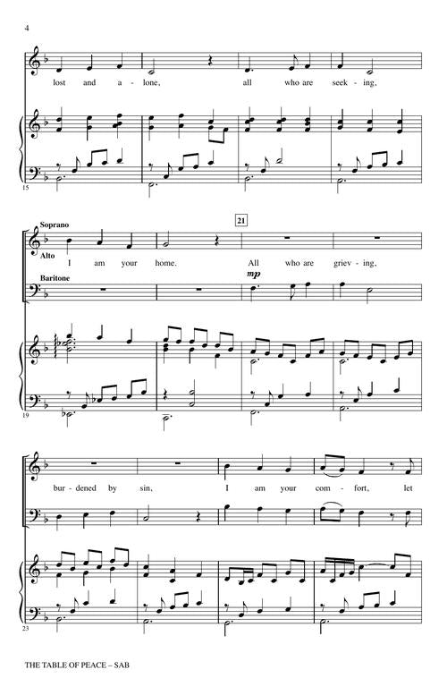 With a pristine quote from the classic hymn tune BREAD OF LIFE, this piece raises the curtain on a winsome invitation to the Lord's Supper. Mercy and forgiveness draw the seeker in lovely melodic strains that rise and fall like a prayer as the anthem unfolds. A lush and satisfying chorus showcases the timbre of the choir while passionately calling the faithful to Bring every burden, bring every need... to the table of peace. Highly recommended!