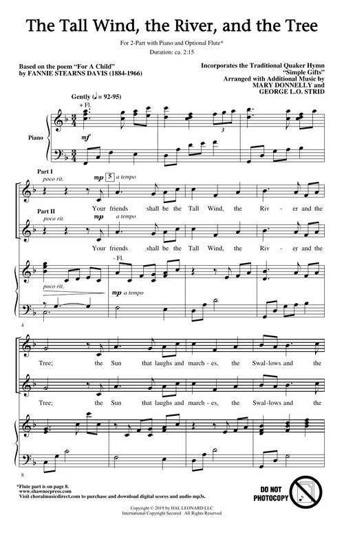 Based on the poem For a Child and incorporating the song Simple Gifts, this lyrical 2-Part choral with optional flute delights with its simplicity and gentleness. It sings of a wonderful message of how we are connected with the world around us, making us better human beings.