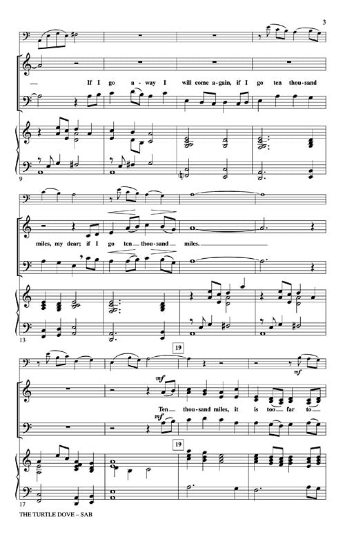 Beautiful choral textures and clean musical lines give special appeal to this treasured folksong setting. The optional cello adds richness!Available separately: SATB, SAB and SSA. Performance Time: Approx. 3:05.
