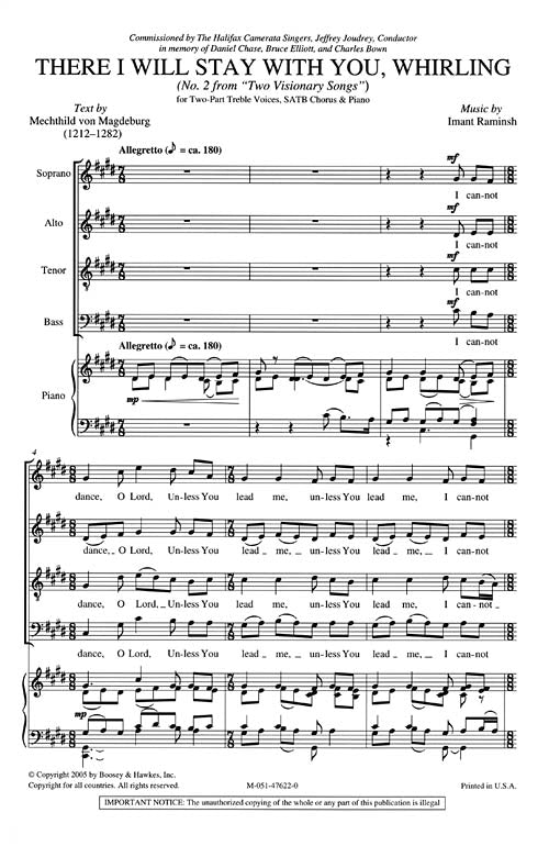 The second of Two Visionary Songs, this piece treats the words of medieval mystic Mechthild of Magdeburg to fluid, dance-like melodies progressing from wistfulness to passionate ecstasy. With piano.