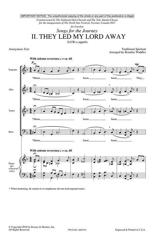 This is the 2nd of three songs that create Songs for the Journey. Setting this traditional spiritual in a slow, gut wrenching style, your choir will find endless places to draw inspiration and emotion in the powerful new arrangement for advanced choirs.