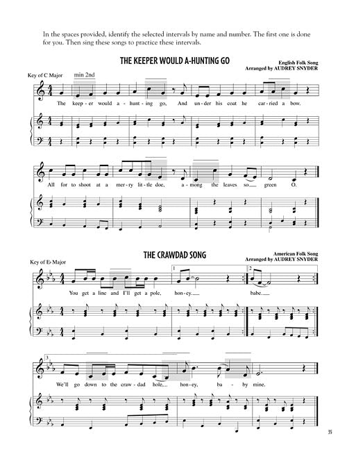From the popular Thirty Days series, here is another publication for teaching basic music concepts. These self-guided lessons and ready-to-use reproducible activity sheets are ideal for choir, band, general music class and orchestra. Each of the thirty lessons in this book is presented in a logical sequence, and will help students learn to recognize all types of intervals through both sight and sound. Throughout the series of flexible lessons, students are given ample opportunity to sing and play the whole array of intervals, and develop their musicianship by identifying intervals within the context of melodies. Whether presented as a comprehensive unit, or stretched throughout the entire semester or year, the lessons can be used for whole group, small group or individual study, saving valuable class time for rehearsal and other activities. Enhance your study with activities from Thirty Days to Music Theory, Thirty Days to Rhythm and Thirty Days to Melody. For Gr. 4-8.