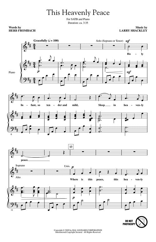 Fragments of Silent Night, Holy Night set the stage for this tender anthem causing us to remember our need for the peace the Christ Child brings. Duration: ca. 3:35.