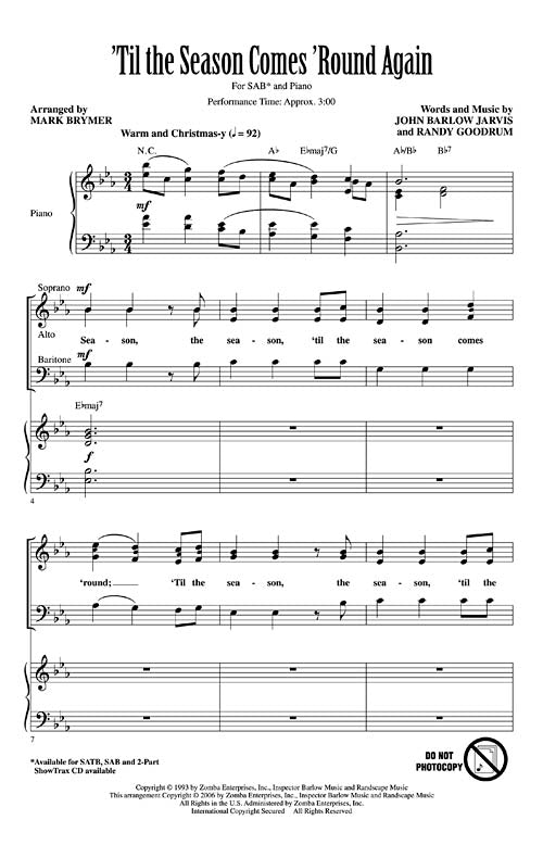 Originally recorded by Kenny Rogers and recently covered by Reba McEntire, Amy Grant and Vince Gill, this heartfelt wish to cherish the special times during the season makes a perfect way to close any holiday program. And we'll all join hands and remember this moment, 'til the season comes 'round again. Performance Time: Approx. 3:00.Available separately: SATB, SAB, 2-Part and ShowTrax CD.