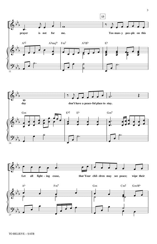 This song, made popular by Jackie Evancho, is uplifting and will be an encouragement to all who sing and hear it. Stan Pethel has made it accessible for a variety of choirs. Available separately: SATB, SAB, SSA, ChoirTrax CD. Duration: ca. 3:50.