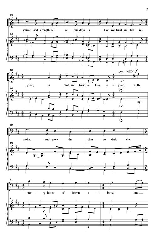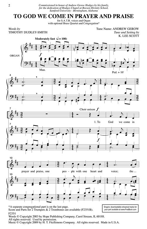 Using a noble text by Englishman Timothy Dudley-Smith, K. Lee Scott has created an elegant and stately hymntune entitled Hodges Chapel. He has set the verses into an anthem with organ format which invites the congregation to join by the final refrain. Optional trumpets and trombones (2/2) are available separately (F2351B). An excellent choice for festival and church use.